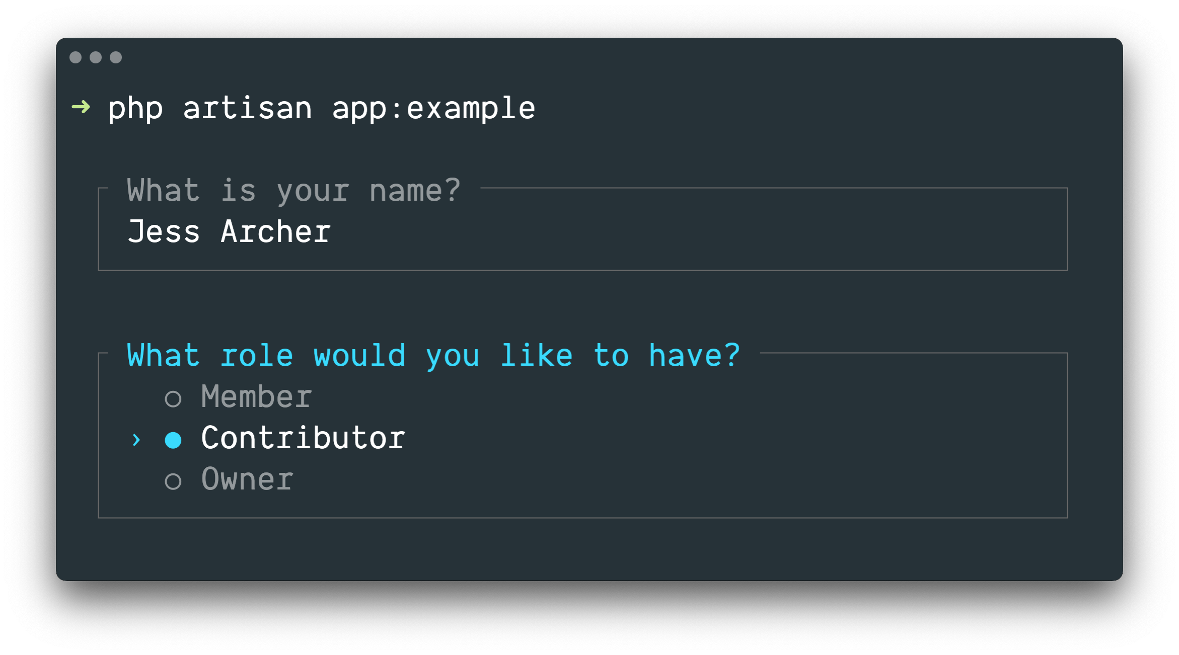 Laravel Prompts is perfect for accepting user input in your Artisan console commands, but it may also be used in any command-line PHP project.