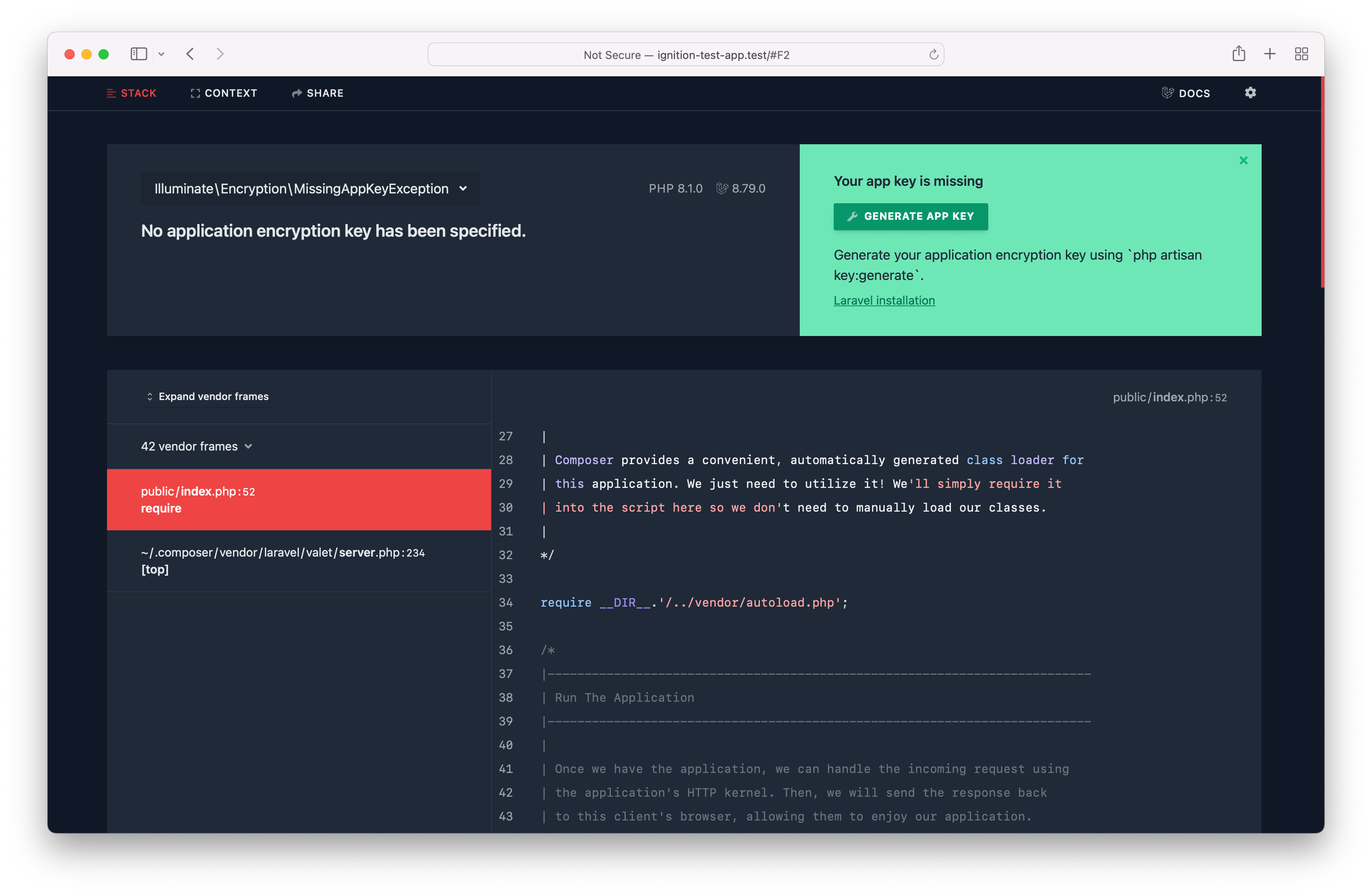 Ignition is developed by Spatie.